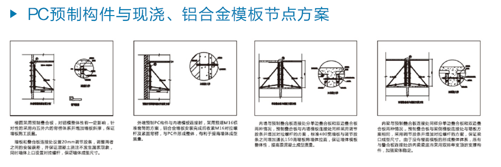 合迪科技始終以打造“綠色建筑”為使命,引領(lǐng)行業(yè)發(fā)展方向,不斷創(chuàng)新研發(fā),并致力推動(dòng)中國(guó)綠色建筑施工的持續(xù)健康發(fā)展。作為《組合鋁合金模板工程技術(shù)規(guī)范》國(guó)家行業(yè)標(biāo)準(zhǔn)、《鋁合金模板技術(shù)規(guī)范》省行業(yè)標(biāo)準(zhǔn)主編單位,合迪科技嚴(yán)格按照國(guó)家標(biāo)準(zhǔn)控制鋁合金模板設(shè)計(jì)、生產(chǎn)及加工質(zhì)量。率先國(guó)內(nèi)項(xiàng)目應(yīng)用的滴水線成型、砌體企口、窗邊結(jié)構(gòu)防水等技術(shù),采用高強(qiáng)度新型背楞、標(biāo)準(zhǔn)化施工程序及施工質(zhì)量過(guò)程控制程序,實(shí)現(xiàn)房屋建筑一次性成型達(dá)到粗裝修標(biāo)準(zhǔn)。