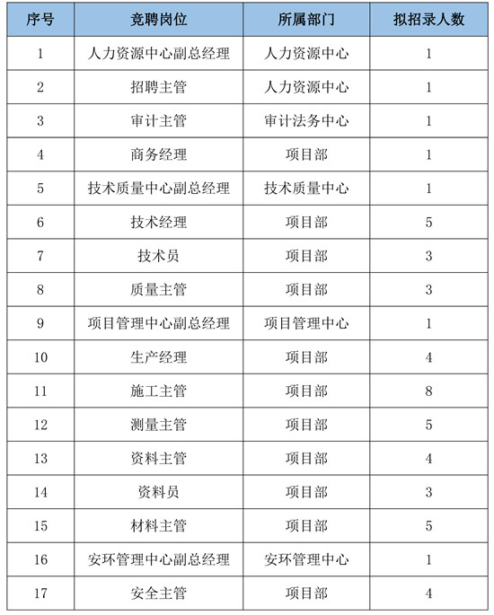 為適應(yīng)公司快速發(fā)展的人才需求,建立人才公平競(jìng)爭(zhēng)、優(yōu)勝劣汰的激勵(lì)機(jī)制,經(jīng)公司研究決定,在全公司范圍內(nèi)進(jìn)行內(nèi)部競(jìng)聘選拔,具體通知如下: