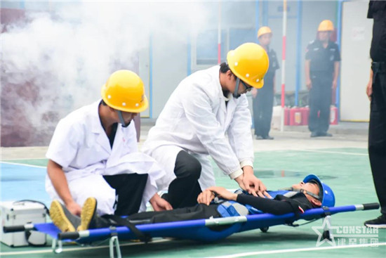 現(xiàn)場設立演練臨時指揮部、通訊聯(lián)絡組、戰(zhàn)斗滅火組、疏散引導組、水電保障組、醫(yī)療救護組等6個專業(yè)處置組。演練中,指揮部臨危不亂、指揮得力;各演練小組反應迅速、精密配合,充分展現(xiàn)了施工項目“現(xiàn)場指揮組織”“事故響應”“人員撤離”“醫(yī)療救護”等應急救援現(xiàn)場的全過程。項目安全員詳細講解應急護療、心肺復蘇等急救知識,并一對一指導滅火器、消防栓的正確使用方法。在全體人員的默契配合下,整個演練過程井然有序,達到預期效果。