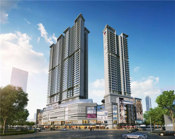 華發(fā)廣場項目位于中山市悅來南路與中山二路交匯處西南側,由地下室、商業(yè)裙樓及4棟住宅組成,總占地面積為2,7300㎡,總建筑面積為19,4738.77㎡,地下為4,9381.97㎡,地上為14,5356.8㎡。塔樓建筑高度為120m、150m,建筑層數(shù)地下3層,地上34、36、42層(其中1-7層為商業(yè)裙樓,8層為轉換層),框剪結構。