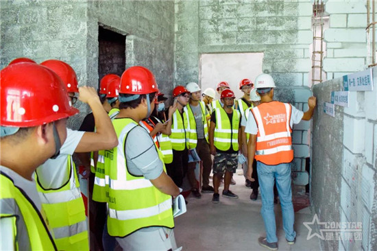隨后,現(xiàn)場講解員帶領(lǐng)學(xué)員現(xiàn)場觀摩,著重介紹了項(xiàng)目施工過程的整體管理模式、特色亮點(diǎn)環(huán)節(jié)和各個施工環(huán)節(jié)的細(xì)節(jié)處理方式。