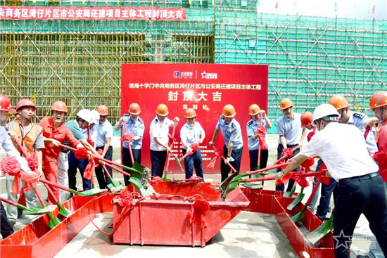 8月17日,天朗氣清,惠風(fēng)和暢,隨著屋面板最后一車混凝土的澆筑完成,由建星集團承建的十字門中央商務(wù)區(qū)灣仔片區(qū)市公安局還建項目主體工程順利完成封頂。