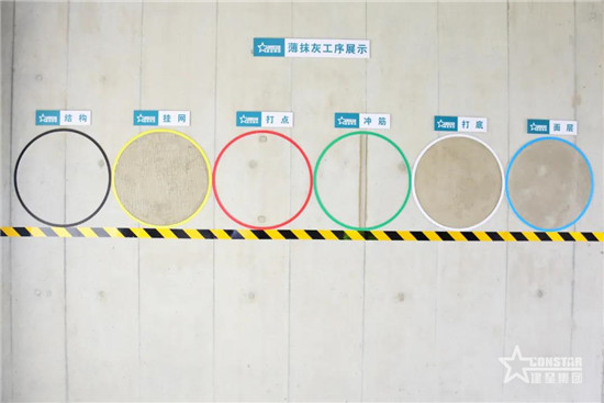 采用紅外激光對(duì)灰餅、筋條施工,保證滿足室內(nèi)的開(kāi)間進(jìn)深、面層垂直平整在4個(gè)毫以內(nèi)。薄層抹灰工效非??臁⒐て诙?,損耗少,空鼓、開(kāi)裂控制效果好,且杜絕了泥水的濕作業(yè),為后續(xù)工藝的穿插提供了必要條件。