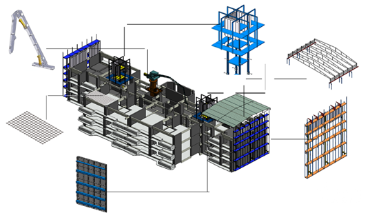 一種全新施工體系,由核心筒自升爬模組成的大模板體系、成品鋼筋網(wǎng)片機(jī)械安裝體系、自動(dòng)伸縮遮陽(yáng)雨棚系統(tǒng)共同組成的智能建造體系。該體系應(yīng)用于施工現(xiàn)場(chǎng),安裝于樓層作業(yè)面。優(yōu)勢(shì)是提高勞動(dòng)效率、降低成本、加快施工周期,提高施工質(zhì)量,同時(shí)施工安全性得到保障。通過(guò)各裝置之間聯(lián)動(dòng)工作,使得工地?cái)?shù)字化、在線化、智能化,項(xiàng)目實(shí)施與企業(yè)管理達(dá)到良好的組合效果。