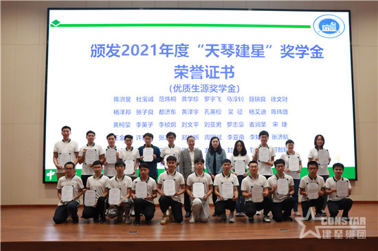 隨后蔡光董事長(zhǎng)、黃瑞敏秘書長(zhǎng)、郝雅娟書記、常青副總裁、梅健偉教授、楊山清教授分別為獲得“天琴建星獎(jiǎng)學(xué)金”的學(xué)生頒獎(jiǎng)。