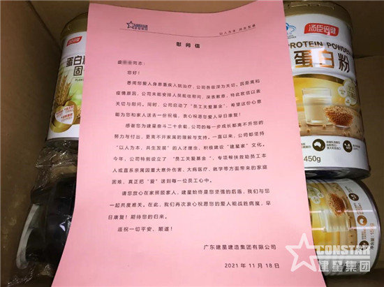 公司每一步成長(zhǎng),都離不開(kāi)每一名員工的努力與付出,更離不開(kāi)家屬們的理解與支持。了解情況后,集團(tuán)工會(huì)根據(jù)制度立即啟動(dòng)“員工關(guān)愛(ài)基金”,緩解燃眉之急。因距離和疫情原因,不能前往慰問(wèn),公司特致信慰問(wèn)表示關(guān)切。未來(lái)可期,建星將永遠(yuǎn)是員工堅(jiān)強(qiáng)的后盾。