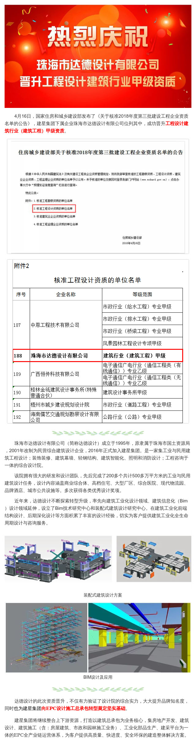 喜訊!珠海市達德設計有限公司成功晉升工程設計建筑行業(yè)甲級資質