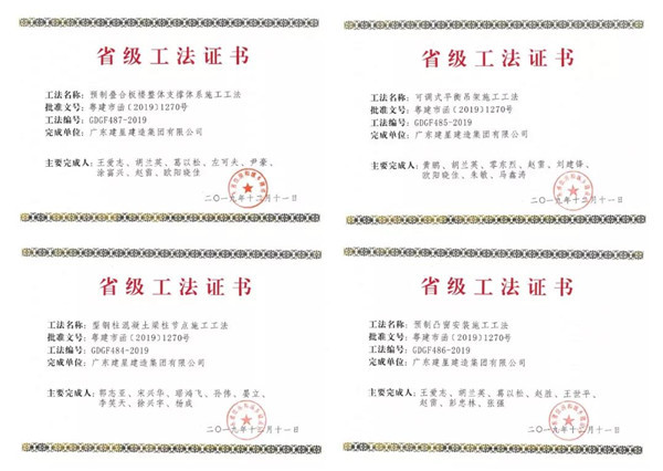 科學(xué)技術(shù)獎(jiǎng)現(xiàn)場照片2019年11月,廣東省住房和城鄉(xiāng)建設(shè)廳組織專家對2019年度全省建筑業(yè)企業(yè)申報(bào)的工法進(jìn)行了評審,我司獲得了4項(xiàng)工法。建星集團(tuán)將高度重視工程建設(shè)工法管理工作,認(rèn)真總結(jié)施工經(jīng)驗(yàn),積極創(chuàng)新技術(shù)管理,加強(qiáng)工法的開發(fā)和應(yīng)用,增強(qiáng)企業(yè)的核心競爭力和技術(shù)積累,不斷提高建筑技術(shù)和工程質(zhì)量水平,促進(jìn)建筑業(yè)轉(zhuǎn)型升級,推動(dòng)建筑業(yè)高質(zhì)量發(fā)展。