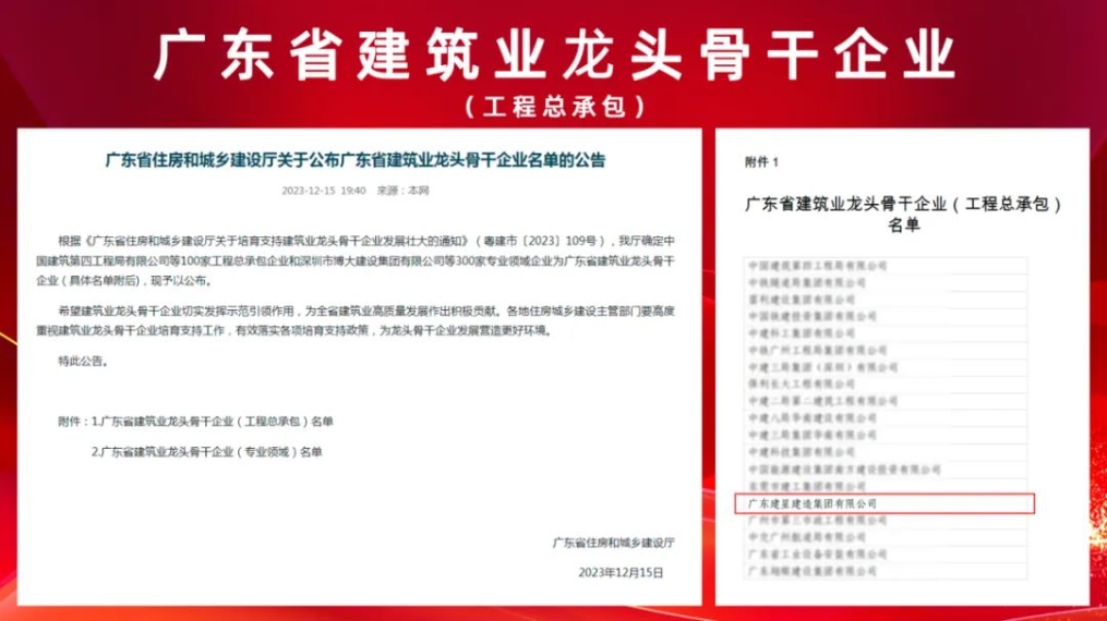 喜報 | 建星集團(tuán)入選“廣東省建筑業(yè)龍頭骨干企業(yè)”