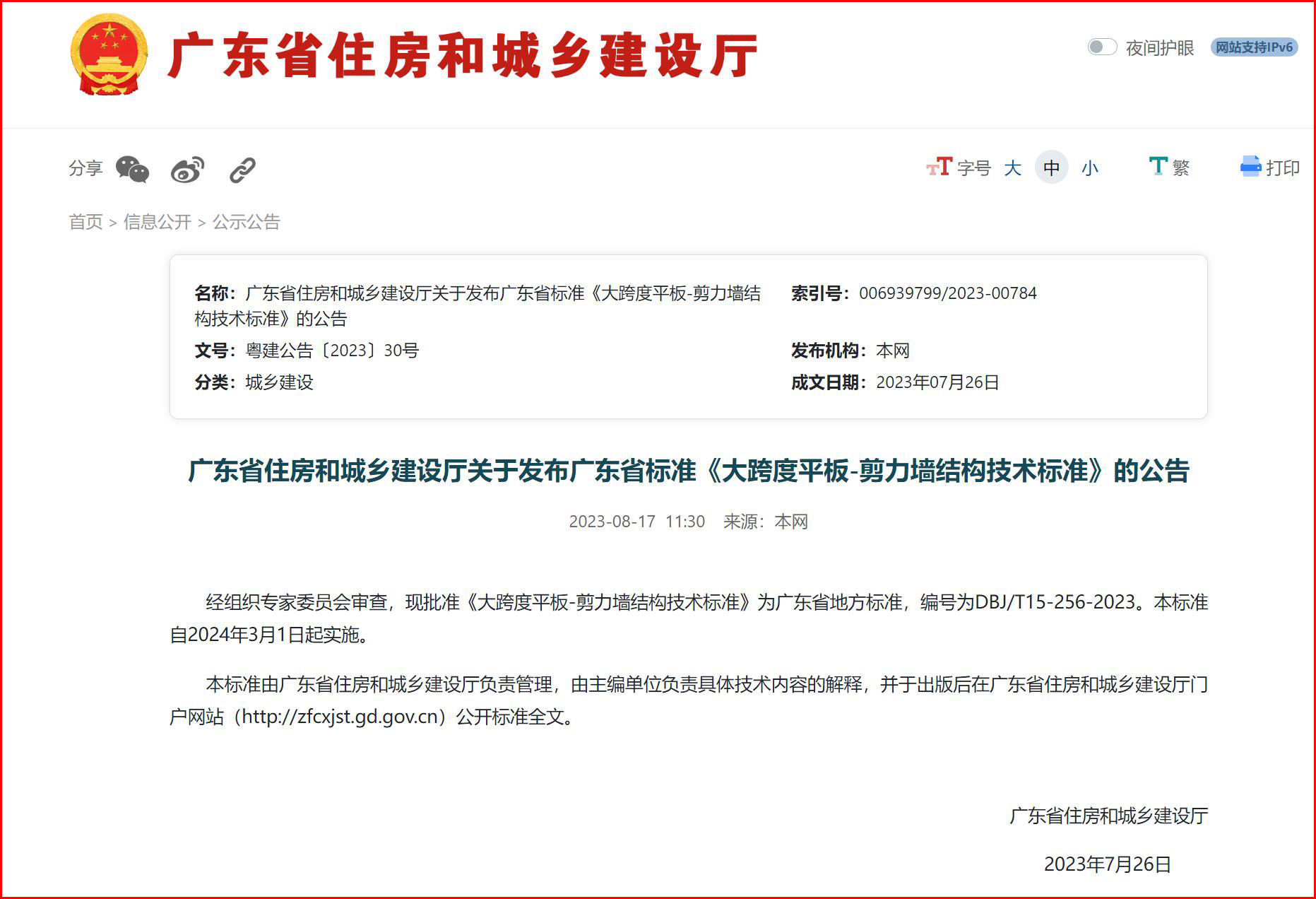 《大跨度平板-剪力墻結(jié)構(gòu)技術(shù)標(biāo)準(zhǔn)》于2024年3月1日起正式實(shí)施