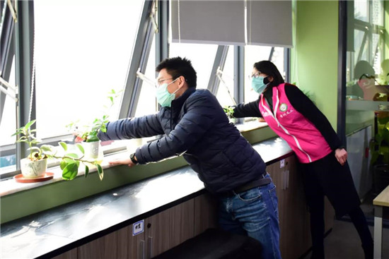 ▲義工引導(dǎo)各部門保持室內(nèi)通風(fēng)換氣
