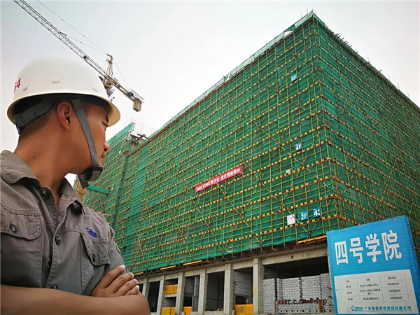 珠海的天氣高溫多雨,潮濕漫長。從四季分明的城市來到這里,起初我特別不適應(yīng)。每天的戶外一線施工作業(yè)對我而言如同蒸了整整一天的桑拿,毒辣的太陽、汗?jié)竦墓ひ掠绕渥屓四臒┰辍H欢呖兆鳂I(yè)注意力必須高度集中,容不得一點(diǎn)馬虎和疏漏。當(dāng)時(shí)心里就一個(gè)想法,無論遇到什么困難,必須堅(jiān)持下去,為項(xiàng)目高質(zhì)量完成保駕護(hù)航。整個(gè)漫長的夏天從開始的咬牙堅(jiān)持到逐漸的適應(yīng),四號學(xué)院就像一個(gè)我親手養(yǎng)育的孩子慢慢長大成人。