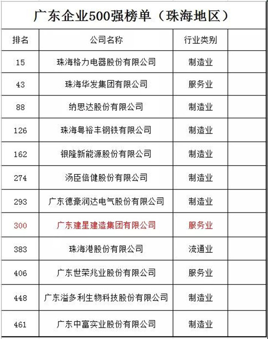 8月29日,2019廣東企業(yè)500強(qiáng)發(fā)布大會在廣州白云國際會議中心舉行。大會發(fā)布了廣東企業(yè)500強(qiáng),廣東省民營企業(yè)100強(qiáng)等榜單。廣東建星建造集團(tuán)有限公司榮登榜單,成為珠海12家上榜企業(yè)之一,也是唯一一家建筑企業(yè),連續(xù)兩年躋身廣東企業(yè)500強(qiáng)、民營企業(yè)100強(qiáng)。