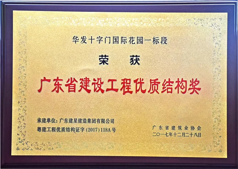 。近日,建星集團承建的華發(fā)十字門國際花園一標(biāo)段、華發(fā)峰尚花園二期工程(二標(biāo)段)、橫琴華發(fā)首府二期(Ⅱ標(biāo)段)主體建安工程、橫琴華發(fā)首府一期主體建安工程(Ⅱ標(biāo)段)分獲“廣東省建設(shè)工程優(yōu)質(zhì)結(jié)構(gòu)獎”及“珠海市建設(shè)工程優(yōu)質(zhì)獎(房屋建筑)”。