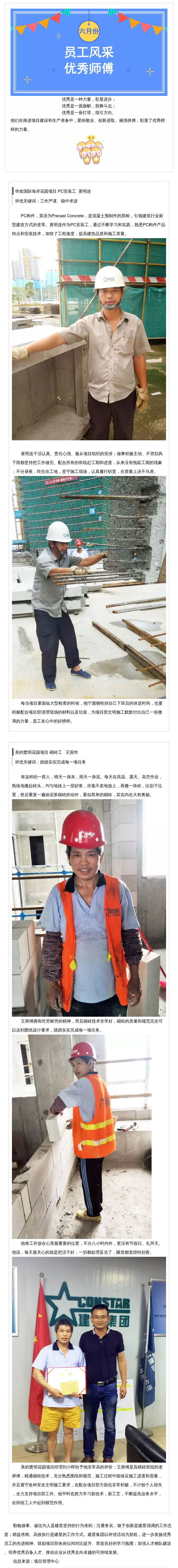6月份優(yōu)秀師傅系列 默默奉獻、勇挑重擔(一)